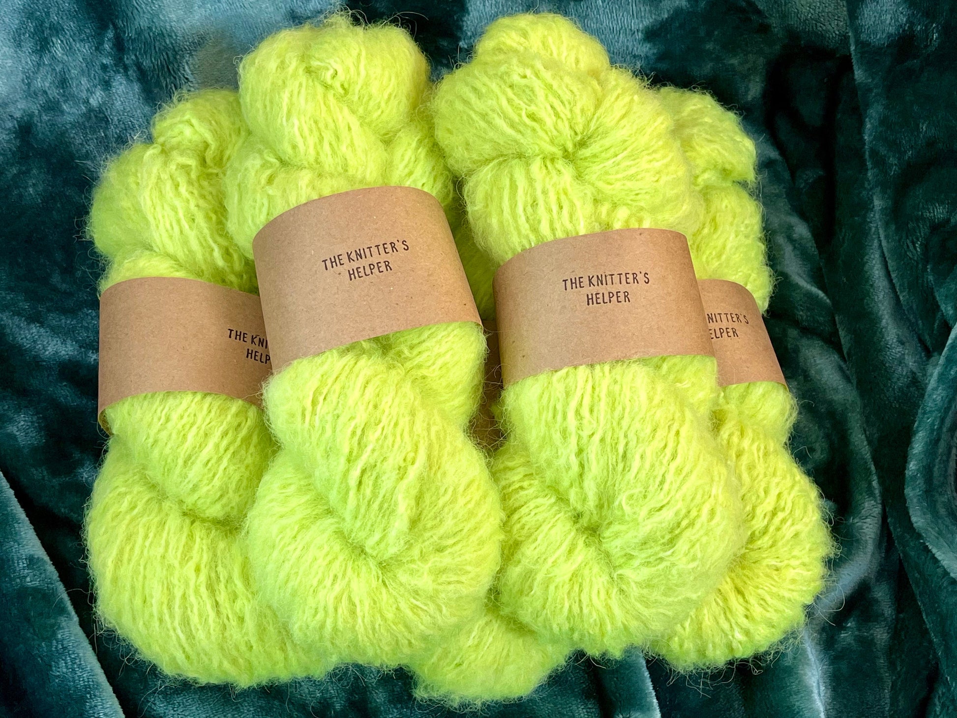 Elevate your knitting projects with our repurposed Aran weight yarn. Bundled into 5 skeins totaling between 2500 and 3000 yards of an electrifying neon green hue (think tennis ball), this versatile yarn is perfect for crafting stunning sweaters, cozy blankets, stylish dresses, and more.